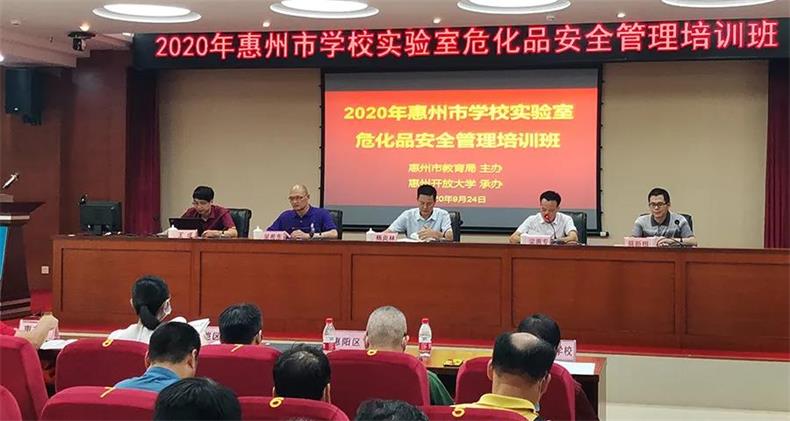 为加强学校实验室与危险化学品安全管理水平,提高学校安全事故应急处理能力,维护学校师生安全和校园稳定,9月24-25日,由惠州市教育局主办、惠州开放大学承办的惠州市2020年学校实验室危化品安全管理培训班在惠州开放大学顺利举行。