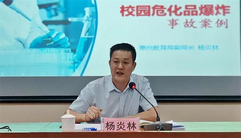 来自各县(区)教育局安全办主任、电教仪器站负责人和学校分管实验室安全的副校长、学校教务处主任以及实验室及危险化学品相关管理人员250多人参加了此次培训。惠州市教育局副局长杨炎林、惠州开放大学副校长吴希东和市教育局电教站负责人梁惠专出席了开班仪式。